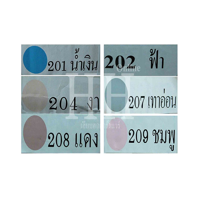 | สี | สีขาว(#203), สีน้ำเงิน(#201), สีฟ้า(#202), สีงา(#204), สีครีม(#205), สีน้ำตาล(#206), สีเทาอ่อน(#207), สีแดง(#208), สีชมพู(#209), สีเขียว(#211), สีอิฐ(#213) |